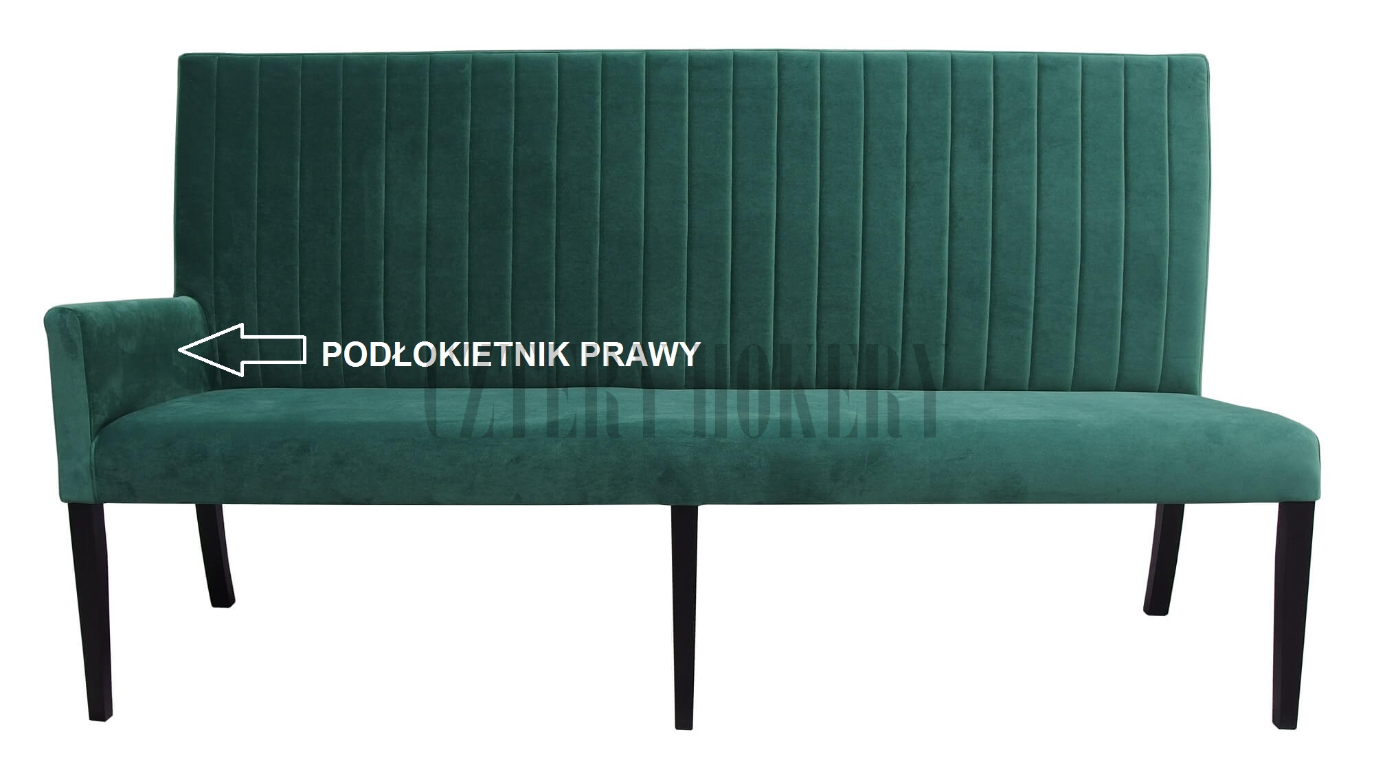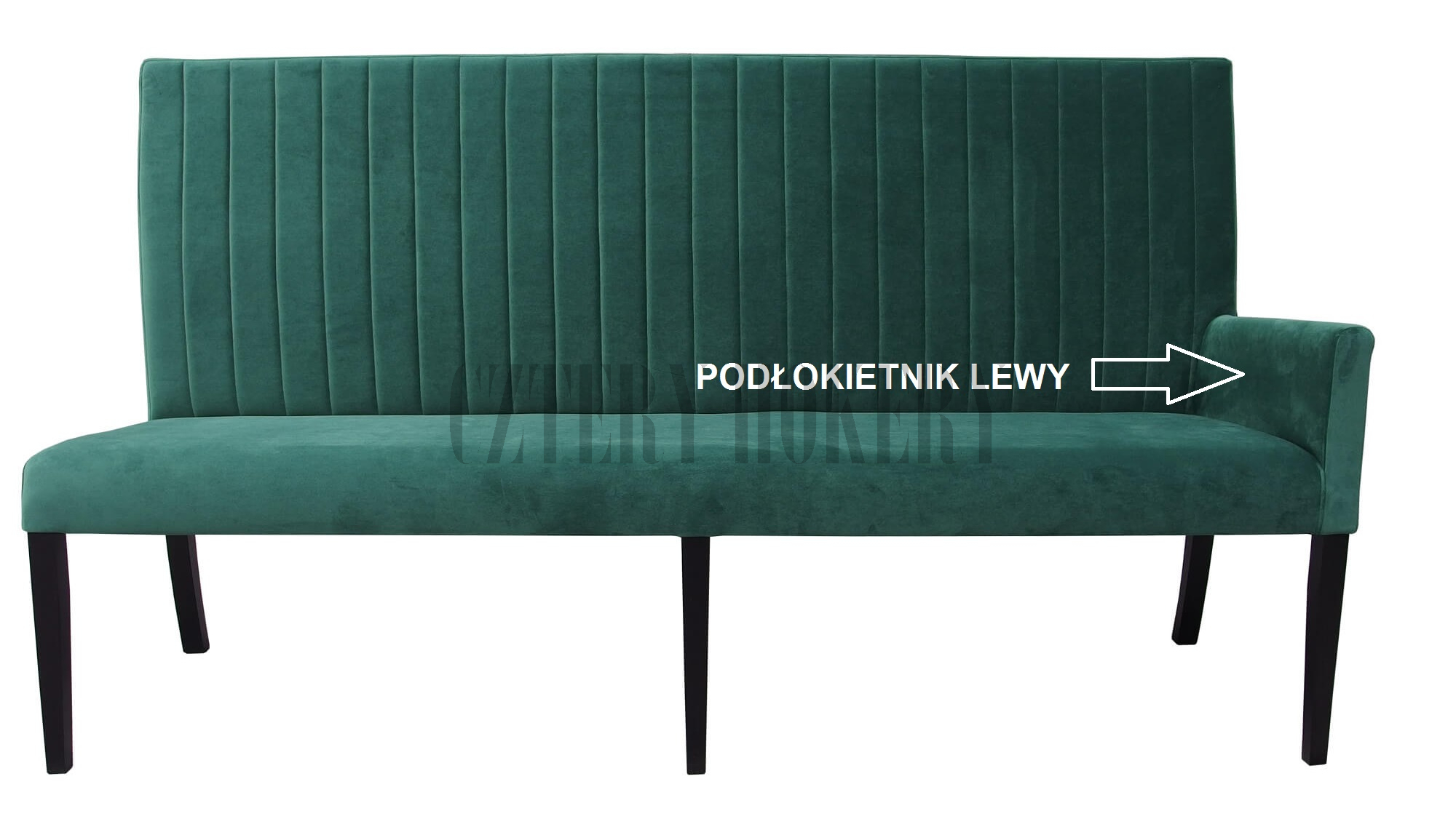 | Budowa mebla | Ławki, Krzesła, Krzesła z podłokietnikami, Pufy, Hokery. Konstrukcja wykonana jest z drewna bukowego klejonego na czopy. Cała tapicerowana cześć konstrukcji, zewnętrznie otulona jest pianką poliuretanową T25 a finalnie tapicerowanym poszyciem wierzchnim. Siedzisko średniej miękkości wyposażone jest w komfortową i odporną piankę poliuretanową T30 o grubości 5 cm, którego podstawą jest odporna płyta HDF o grubości 7 mm, montowana do szkieletu konstrukcji. Do oparcia wykorzystano pasy tapicerskie, które powlekane są pianką poliuretanową T20. |